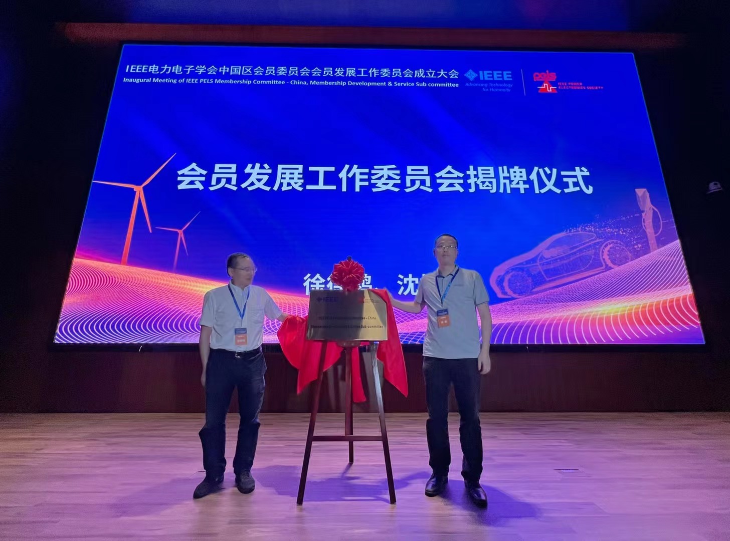 會議當天,由孫建教授的學術報告作為開場,分享了電力電子和基于轉換器的電力系統,徐德鴻教授和英飛凌高級技術總監陳立烽先生分別就寬禁帶器件大功率電力電子系統最新進展以及功率半導體和電力電子協同共進相關課題做了分享,孫凱教授就中國區的工作成果做了報告。會上,徐德鴻教授與沈捷院長共同為IEEE PELS中國區會員發展工作委員會進行揭牌,研究院作為工委會的掛靠單位,將全力推進會員發展工作,建立起中國區會員之間的聯系橋梁,持續開展會員服務與學術交流工作。